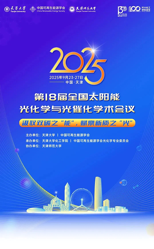 為深入貫徹落實(shí)黨的二十大精神,踐行綠色低碳發(fā)展理念,培育發(fā)展新質(zhì)生產(chǎn)力,全面響應(yīng)國家“加快實(shí)現(xiàn)高水平科技自立自強(qiáng)”的戰(zhàn)略部署,充分發(fā)揮太陽能技術(shù)對“雙碳戰(zhàn)略”的支撐作用,中國可再生能源學(xué)會光化學(xué)專業(yè)委員會于2025年9月23日至27日在天津市召開“第十八屆全國太陽能光化學(xué)與光催化學(xué)術(shù)會議”。